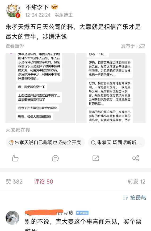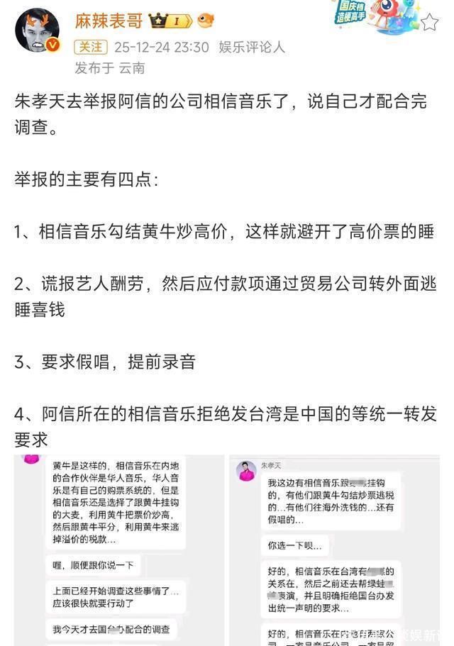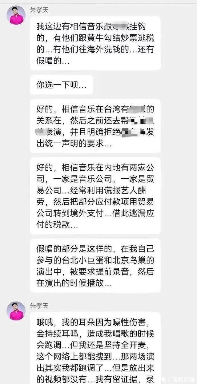 这些内容都是那些娱乐博主们爆出来瓜,朱孝天本人和官方都没有进行回应。 不知道这些娱乐博主们曝出来的瓜到底是真的,还是故意伪造的截图。
